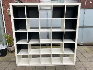 Бронь. Отдам бесплатно IKEA KALLAX. Небольшое повреждение от воды у основания. Черные вставки с дверцами не включены в комплект. Уже разобран. Хаарлем.