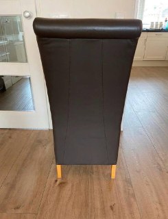 4 стула к обеденному столу, темный шоколад. Кожа мягкая. Состояние очень хорошее. 75евро. Роттердам