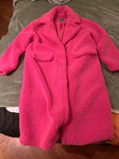 Так и не вышедшая на улицу розовая тедди шуба из Primark. Размер М, но оверсайз. 25 евро. Амстердам, центр. Почтой не отправляю